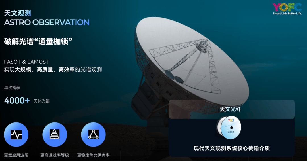天:長飛的天文特種寬譜光纖可實現大規模、高質量、高效率的光譜觀測,可單次捕獲4000+天體光譜。