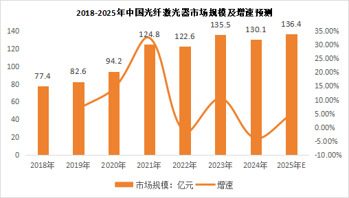 相關數據顯示,我國光纖激光器市場規模從 2019 年的 82.6 億元增長至 2024年的130.1億元,復合增長率超過12%。此外,隨著國內光纖激光器廠商綜合實力增強,國產光纖激光器功率和性能逐步提高,光纖激光器國產替代加速,國產光纖激光器市場占比已達 86.2%。