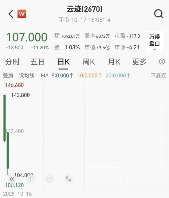 10月16日,被稱為“酒店機器人第一股”的云跡科技正式登陸港交所。當日開盤后該股一度上漲至142.8港元,較發行價95.6港元上漲近50%,最終報收120.5港元,首日漲幅超26%。次日,云跡科技未能延續首日的勢頭,股價繼續下跌11.2%至107港元。