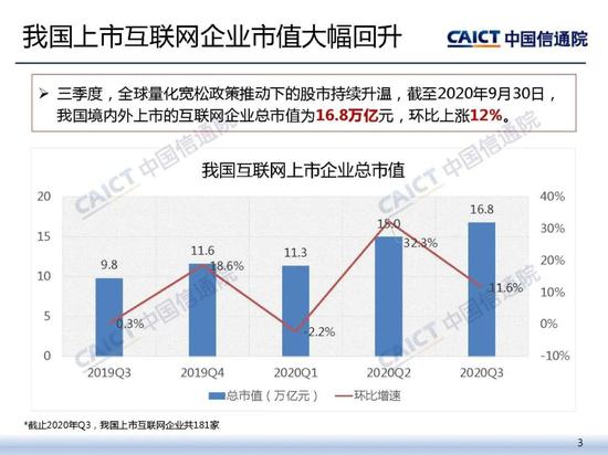 中國信通院:2020年三季度我國上市互聯網企業總市值16.8萬億元