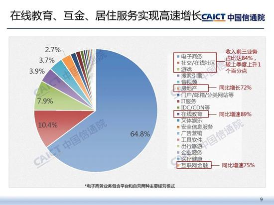 細分領域中,在線教育、互聯網金融、居住服務等業務實現高速增長。