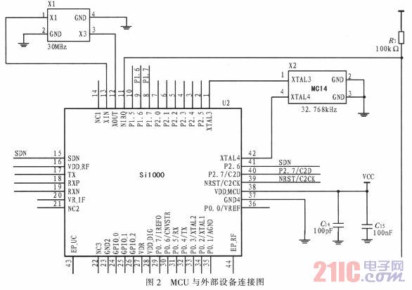 MCU與外部設(shè)備的連接圖如圖2所示。