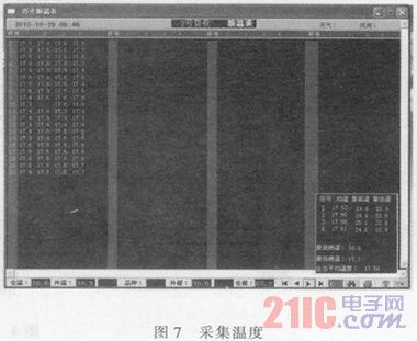 系統(tǒng)完成后進(jìn)行了大規(guī)模的測試,采集數(shù)據(jù)完整率在95%以上,滿足目前糧庫對糧情系統(tǒng)的要求。用上位機(jī)軟件點(diǎn)擊測溫,系統(tǒng)就會按照設(shè)置以各倉位進(jìn)行上傳數(shù)據(jù),經(jīng)過上位機(jī)軟件進(jìn)行處理。收到的糧食溫度如圖7所示。