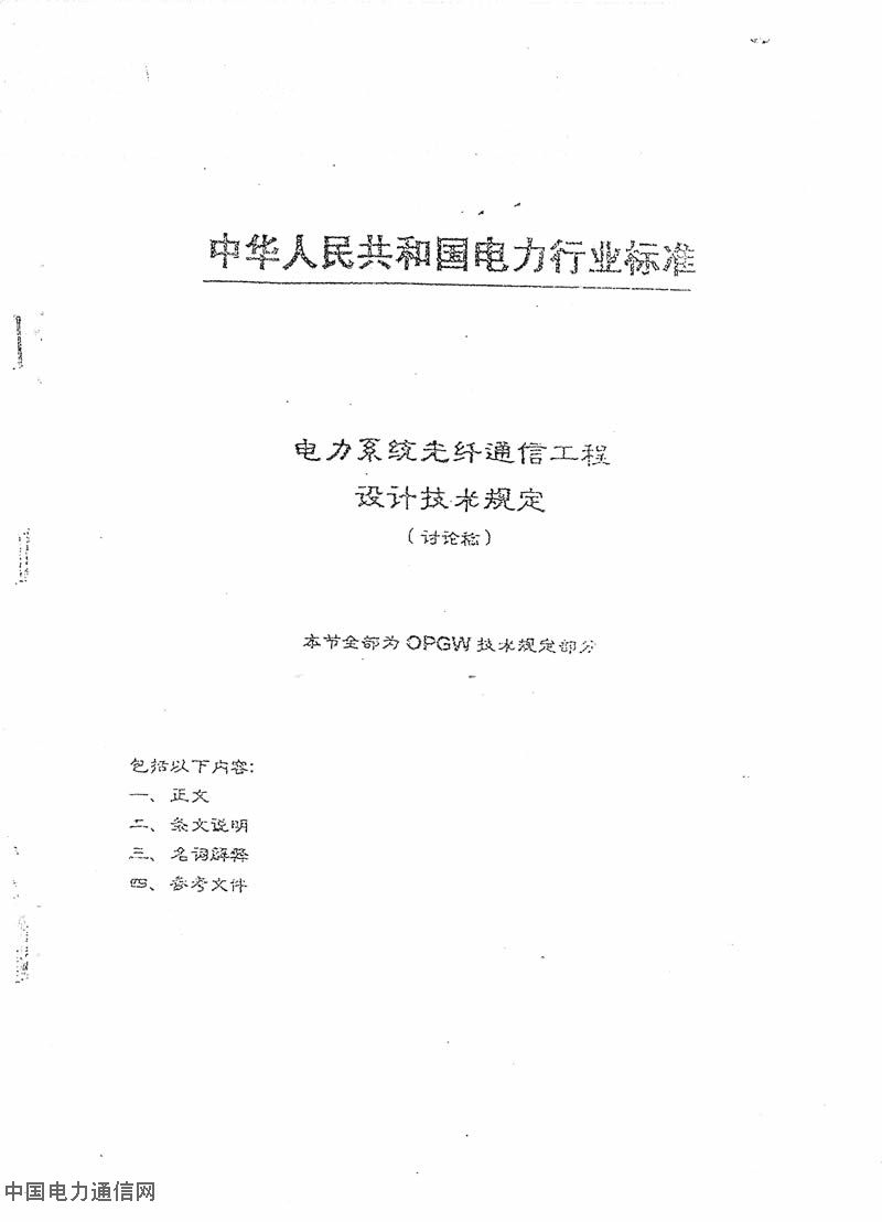 電力系統光纖通信工程設計技術規定(討論稿) OPGW技術規定部分. Post By:2006/11/17 21:05:52 [只看該作者]