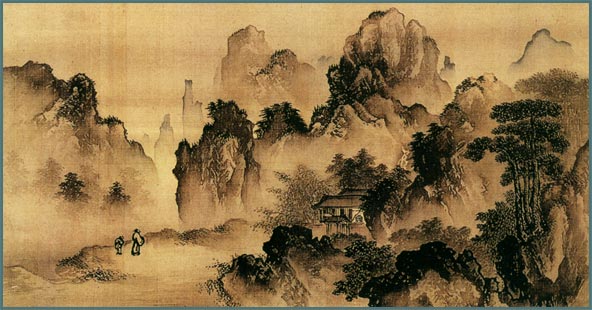 此圖寫靈陽山明水秀之景。屋字以界畫法為之。層巒列 則以斧劈皴擦山頭,繼以淡墨接染,漸次虛淡,至山腳 恍若云霧彌漫。畫面具空明朗潤之境,頗得戴進真傳。 夏芷,生卒年不詳,明代畫家。字廷芳,錢塘(今浙江杭 州)人。畫師戴進,致力甚勤。善山水人物諸體,筆力直逼乃 師。傳世作品有《歸去來兮圖》。