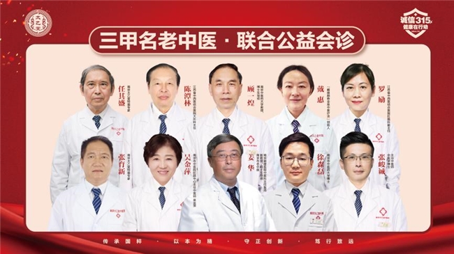 3月15-16日,“誠信3.15·健康在行動”三甲名老中醫聯合公益會診日正式開啟!會診日期間,南京太乙堂中醫院特別邀請南京鼓樓醫院中醫科主任醫師、碩士生導師、南京市名中醫姜華教授;南京中醫藥大學博士生導師、中華中醫藥學會養生康復分會副主任委員顧一煌教授;南京中醫藥大學針灸推拿學博士、澄江針灸學派傳人徐森磊博士;南京中醫藥大學針灸推拿學博士、南京非物質文化遺產“京西龐氏正骨法”傳承人張峻誠主任;江蘇省中西醫結合醫院大外科陳潭林主任;南京市中醫院肛腸中心吳金萍主任;江蘇省中西醫結合醫院肛腸科羅勵主任;戴維順勢全息中醫療法創始人、上海復旦大學易感疾病基因方面專家戴惠主任;國家級名中醫謝昌仁親傳弟子、副主任中醫師任其盛主任;南京太乙堂特邀心腦血管專家張育新主任等名醫專家,為心腦血管疾病、疼痛疾病、肛腸疾病、高血壓、高血脂、高體重、糖尿病、痛風、失眠等慢性病患者提供規范化診療和慢病健康管理服務,全面守護慢性病患者的健康!
